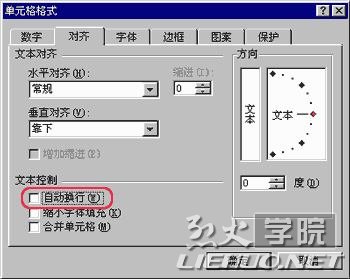 在excel中输入一段文字敲入回车并不能实现诸如word等一样的回车效果,而是自动进入下一个单元格。那么excel中就不能实现一个单元格中文字回车的效果吗?答案肯定是NO!从网上总结了一下,供以后使用。 一、自动换行的方法。 选中要换行的单元格,单击“格式”菜单,选择“单元格”命令,然后选择“对齐”选项卡,选中“文本控制”标题下的“自动换行”复选框。