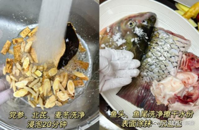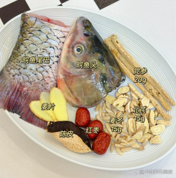 即将要迈入5月份,5月份将是盛夏时节,气温开始呈现上升的趋势,温度非常稳定,人的身体很虚弱,气虚体弱,会让人全天都没有精神,这个时候需要进补。这个时候要照顾好自己,调整好自己的饮食,平常要多喝肉汤,排骨汤或鱼头汤。今天分享一道鱼头汤的做法——党参北芪陈皮鱼头汤,鱼汤特别鲜美,老少皆宜,别不懂吃。5月将至,内行人经常喝这汤,汤鲜味美,营养全面,为入夏打基础。  【党参北芪陈皮鱼头汤的制作顺序】 食材清单:选购一条草鱼(草鱼分为很多部位,鱼身适合蒸或煎着吃,鱼头和鱼尾适合用来炖汤,鱼头汤非常鲜美,滋补气血,好处多多),党参20克左右,生姜一小块,冷水少许,食用油若干,若干个红枣,北芪15克左右,陈皮一大块,麦冬15克左右,料酒少许,食盐若干,少许白胡椒粉,枸杞子少许,香葱几根,其他。 正确制作顺序: www.ws46.com 第一步:提前选购好草鱼,党参,北芪和陈皮等食材,将黄芪,麦冬和北芪放在碗中,加上适量冷水,浸泡20分钟,捞出控干表面水分。第二步:将草鱼提前宰杀好,只保留鱼头和鱼尾,去掉鱼头的鱼鳃,去掉鱼鳍和鱼尾,反复用清水冲洗干净,控干水分。 第三步:鱼头可以用食盐和料酒来腌制,生姜洗净切成片状,陈皮用温水泡发,刮掉一些脏东西,控干水分备用。第四步:几个红枣洗净去核,剪成几个小块,香葱洗净切成细段,准备腌制好的鱼头和其他食材,开始制作这道党参北芪陈皮鱼头汤。 第五步:擦干鱼头表面的水分,锅底提前烧热乎,加上少许食用油,鱼头和鱼头放入锅中,小火慢慢煎至金黄。 第六步:放入一些姜片和料酒去腥,放入党参,麦冬和北芪,加上适量开水煮至沸腾。