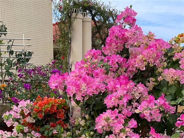 三角梅花期较长,开花数量较多。说是一年四季,一次万朵,说是盆栽可能有点夸张,但说是地栽就没那么夸张了,一到花期,遍地都是。 当然,这种场面在北方是见不到的,因为不耐寒冷,所以在北方,冬天是无法在户外生存的。所以,三角梅都是放在房间里,或者放在阳台上。 除了过冬的问题外,三角梅还挺好养的,有些勤奋的品种,一到开花的季节,就能开出一大片的花朵。