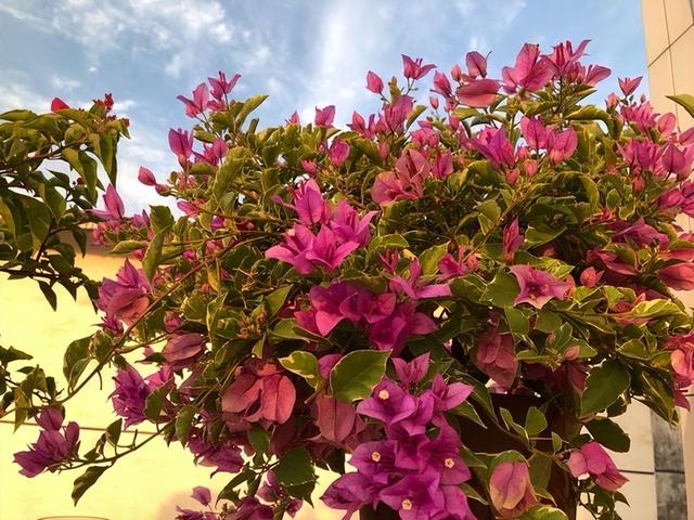 论开花数量,没有任何一种花能比得上它,哪怕是月季花,只要精心照料,都能开出一大片花来。 三角梅属于攀缘类,可以在阳台上培育,根据自己的喜好而定,想要做一个小盆栽,就要多做一些修剪,想要尽可能多的开花,有足够的空间,可以用攀缘架来辅助。