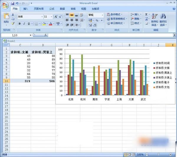 提示:数据透视图已经创建出来了,在这里需要注意的是,在创建透视图之前一定要选中需要汇总的数据单元格。