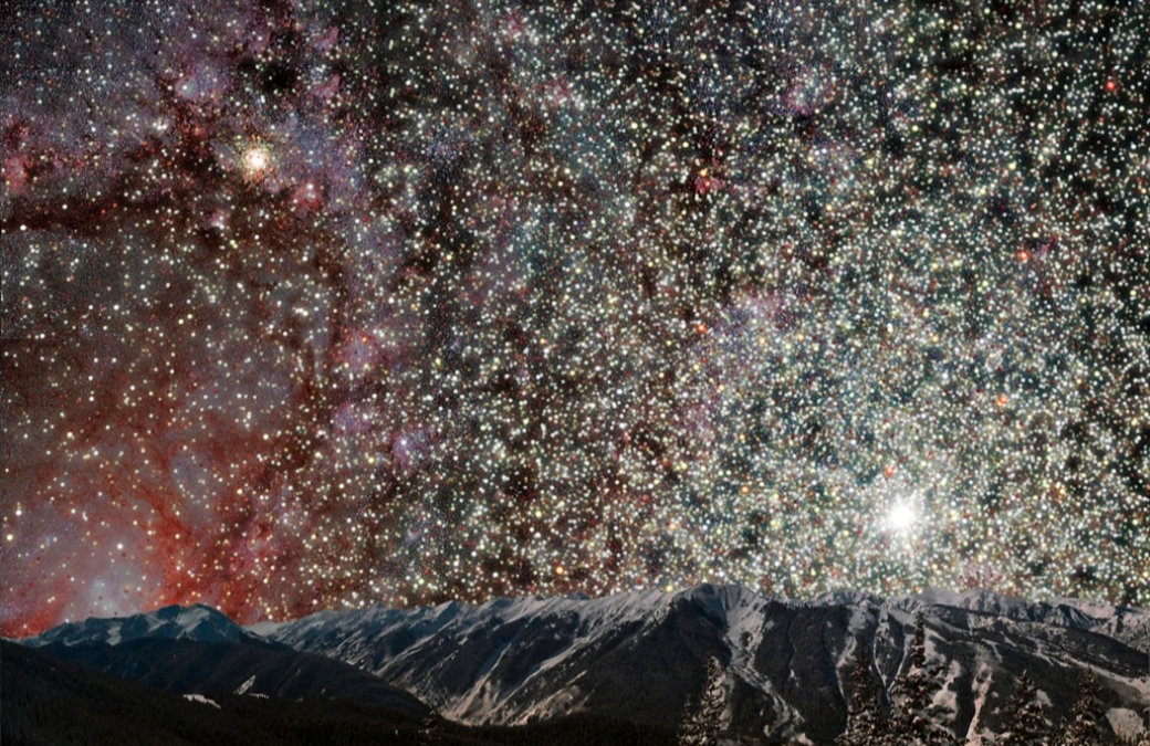 地球上将不再区分昼夜,因为到了晚上即便太阳落下,夜空中百万颗亮度相当于天狼星的星星,也足以把黑夜照得像白天一样,在这样的强光之下,我们也看不到银河系中心之外的星星,就像在白天在太阳下看不到星星一样。