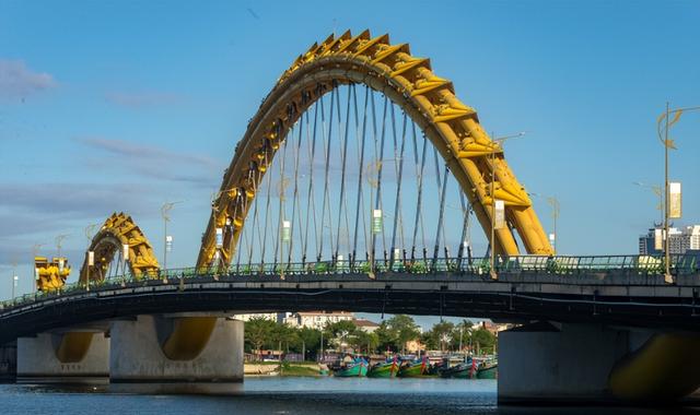 越南的这个龙桥已经是当地的一个著名的建筑了,最早建立的时候是为了纪念该城市的38周年,同时也为了打通两岸的交通,所以在修建的时候考虑到加入一些越南的元素,最终这个桥体的周围修建了一个金色的龙,从外观上来看我们看不出特别的出众,但是这里每到节假日的时候都会举行表演,这里的金龙还会喷火,十分的壮丽。