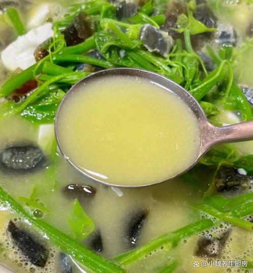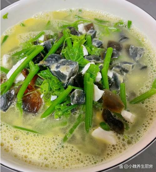入夏前,遇见这菜别手软!一清热、二通便、三补钙,现在吃正当季。转眼就到了4月份的尾声,5月马上就要来临了,5月5日是立夏节气,是标注着夏天真的要来临了,现在还处于春末阶段,季节交替的时候,气温忽高忽低,加上身体非常燥热,人的肝火非常旺盛,肠胃出现不适,胃口也受到一定的影响。春末夏初出现很多新鲜的蔬菜,南瓜藤和佛手瓜苗就是其中之一,今天准备用佛手瓜苗,皮蛋和豆腐制作一款汤品——佛手瓜苗皮蛋豆腐汤,做法很简单,汤品鲜美,不懂吃可惜了。很多人还是第一次听说,赶快收藏起来哦。入夏前,有钱没钱,多给家人喝这汤,营养易消化,现在吃正当季。  【佛手瓜苗皮蛋豆腐汤的制作技巧】 食材清单:选购新鲜佛手瓜苗200克左右(佛手瓜苗是一种鲜嫩的嫩尖,一般在春夏两季上市,叶片非常鲜嫩,富含大量维生素和纤维素,荤素搭配都可以,我们家喜欢用来煮汤),皮蛋1-2个(皮蛋又叫变蛋,是用新鲜鸭蛋制作加工而成,蛋黄和蛋白分明,可以做成凉拌皮蛋或皮蛋汤,皮蛋做汤才能够发挥其最大的营养价值,更利于营养的吸收),嫩豆腐200克(或者选择内酯豆腐,口感都非常嫩滑,营养价值出色,是用来煮豆腐汤的首选),冷水和开水少许,食盐和鸡精少许,食用油少许,姜蒜少许,食盐若干,味极鲜半勺,胡椒粉半勺,其他佐料。