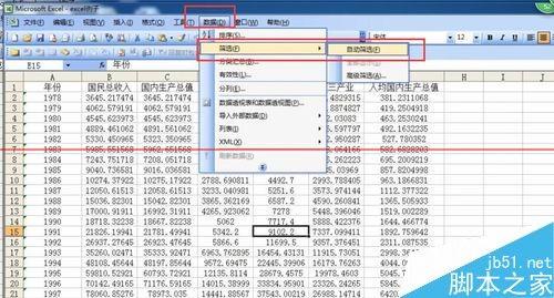 在Excel的应用中,有时候为了更好查找、比较或是显示某一时段、某一内容的数据,我们经常会用到筛选的功能,只需要筛选出自己所需要的数据,把其他数据进行隐藏。下面,小编教你巧用标题行进行表格信息的筛选,详细请看具体的操作步骤。 1、点击上方功能区中的“数据”按钮,在展开的选项卡中选择“筛选”,再在“筛选”的选项卡中选择“自动筛选”。