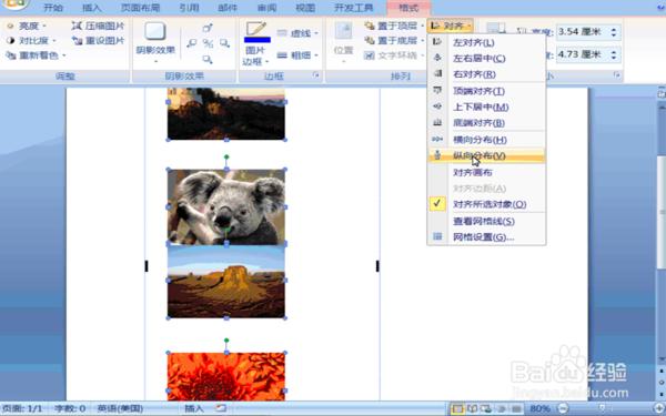 6、左右居中后,图片还没有对齐好,下一步同样鼠标点击“对齐”功能,选中点击“纵向对齐”,这时图片就完成了全部对齐。