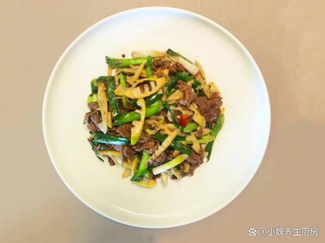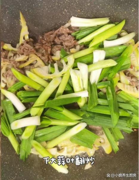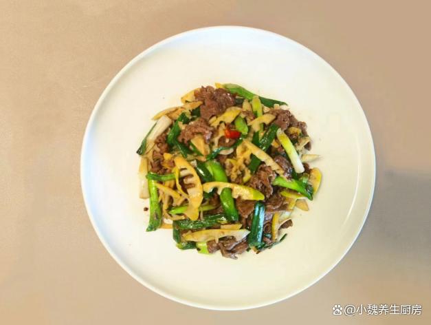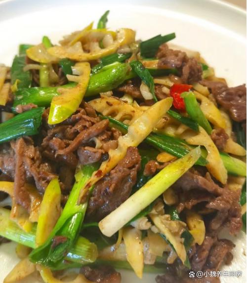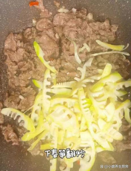 步骤6:放入一些姜蒜炒香,倒入焯水好的春笋,将其炒至断生,丢入一些大蒜苗,用锅铲快速翻炒均匀。 步骤7:加上少许生抽和蚝油,加上一丢丢食盐和胡椒粉,加上半勺鸡精和其他佐料,滴入一些香油,翻炒片刻,装盘出锅,这道蒜苗春笋炒牛肉就制作完成了。 蒜苗春笋炒牛肉的制作小贴士:首先,选购优质的食材至关重要。选用新鲜嫩滑的牛肉,以及饱满的蒜苗和春笋,能确保菜肴的口感和营养价值。在购买时,可以观察牛肉的颜色是否鲜红,质地是否紧实;蒜苗和春笋则应该选择颜色鲜绿、质地脆嫩的。 (www.ws46.com) 其次,处理食材时要细心。将牛肉切成肉丝,用料酒、生抽、淀粉腌制片刻,有助于提升牛肉的鲜嫩口感。蒜苗和春笋也要切成合适的段状,方便煸炒时均匀受热。在烹饪过程中,火候的掌握也是关键。先将腌制好的牛肉快速滑炒至变色,捞出备用。接着,将春笋和蒜苗放入锅中煸炒至断生,最后将牛肉重新倒入锅中,与春笋蒜苗一起翻炒均匀。此时,可以根据个人口味加入适量的盐、鸡精调味。最后,出锅前淋入少许香油,能为菜肴增添一丝**人的香气。这样,一道美味的蒜苗春笋炒牛肉就完成了。 在制作这道菜时,我还喜欢加入一些自己的创意。比如,我会尝试在腌制牛肉时加入一些切碎的姜末和蒜末,以去腥增香。此外,我还会在炒制过程中加入一些辣椒段或花椒粒,让菜肴更具风味。小伙伴们,你们是否吃过这道蒜苗春笋炒牛肉呢?(文中的配图全部出自网络)