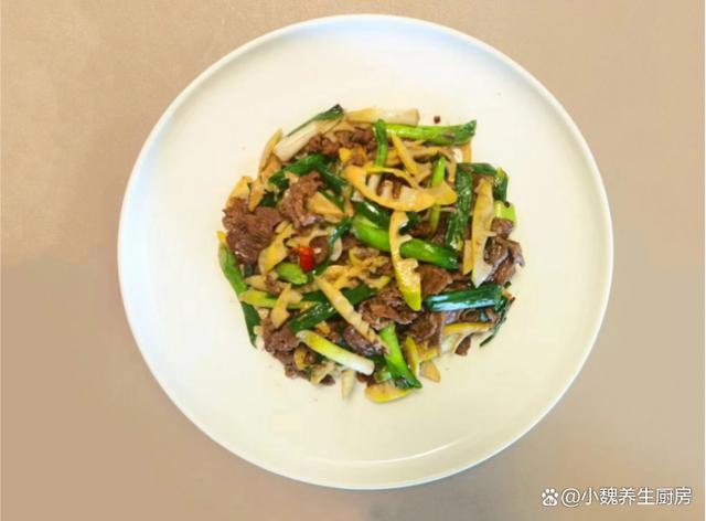 时间如流水一样,春季过去很长一段时间,再过半个月就要入夏了,时光匆匆,很多春季蔬菜就要下市了,错过吃最佳的时期,需要再等一年,比如说野菜或春笋。春笋是大自然的馈赠,雨后拔地而出,嫩尖非常鲜嫩,营养价值很出色,春季一定要多吃它。今天准备用春笋,蒜苗和牛肉制作一道家常菜——蒜苗春笋炒牛肉,闻起来特别香,肉丝非常嫩滑,天天吃都不会腻。春天,这菜要使劲吃!简单易学,应季而食,营养全面,别不懂吃。  【蒜苗春笋炒牛肉的正确做法】 食材清单:选购新鲜春笋300克左右(春笋是春天最嫩的时令蔬菜,以野生为主,是大自然的馈赠,口感非常清甜脆口,营养价值出色,可以搭配猪肉或牛肉一起吃),新鲜大蒜叶几根,若干个大蒜头,干辣椒几个,选购新鲜牛肉里脊200克左右(牛肉里脊是肉质最嫩的部位,脂肪含量非常低,口感最为鲜嫩,非常适合作为炒着吃,但是需要提前腌制和调味),食用油和辅食油少许,生抽和蚝油少许,红薯淀粉少许,胡椒粉和食盐若干,鸡精和食盐少许,其他调味品。 正确制作顺序:步骤1:提前选购好春笋,大蒜苗和牛肉里脊等食材,先把生姜切成细丝,干辣椒洗净切成小段,备用。步骤2:将几根大蒜苗去掉根须,去掉不新鲜的叶片,反复清洗干净,切成若干小段,大蒜去皮切成细末,备用。 步骤3:将春笋的叶鞘剥掉,切掉根部洗净,斜切成若干细丝,锅中煮一些清水,煮沸后加上食用油和食盐,倒入春笋焯烫出来,捞出放入凉水浸泡,这样春笋的口感更脆一些。 步骤4:牛肉里脊反复洗干净,逆着纹路切成片,然后切成一些细丝,牛肉丝放在容器中,加上少许食盐,加上红薯淀粉一勺,调入半勺料酒,放入一些生姜丝,滴入辅食油,用手快速搅拌,把牛肉丝腌制15分钟。