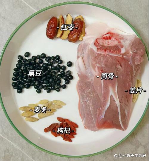 时间匆匆溜走,已经到了4月下旬,处于春天的最后阶段,快要迎来夏天的来临,春天的雨水多,气温非常温和,夏天就越来越炎热,这个时候身体代谢很快,非常缺乏营养,这个时候需要适当进补,多喝一些鲜美的羹汤,让营养更容易消化和吸收。最近气色非常差,感觉身体出现虚弱的情况,可以给家里人尝尝这款汤品——黑豆麦冬猪骨汤,汤品非常好喝,营养全面,错过就太可惜了。许多人没有掌握这款黑豆麦冬猪骨汤的做法,仔细瞧一瞧哦。春季喝汤,夏季不慌!春天要常喝这汤,补血补气,增强抵抗力。  【黑豆麦冬猪骨汤的视频解析】 食材清单:选购新鲜筒子骨400克(筒子骨是猪骨之一,肉少骨头多,骨头里面都是骨髓和营养,煲汤会让营养最大化,喝起来超级鲜美,促进个头的增长),黑豆35克左右(黑豆是一种黑色的豆类,个头不大,营养价值高,具有补血养肾、美容护发的功效,适合煮粥或煲汤),冷水少许,纯净水少许,一小把枸杞子,麦冬20克,黄芪10克,4-5个红枣,生姜15克左右,少许料酒,一丢丢食盐和胡椒粉,其他调味品。
