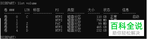 5. 接下来将所有分区列出:list volume