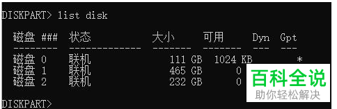 3. 将所有磁盘列出:list disk