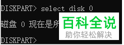 4. 因为EFI分区和系统盘是在同一块硬盘上,确认一下系统是装在磁盘0上的,所以我们需要使用select disk命令,将磁盘0选中,需要根据我们的实际情况,系统装在哪个硬盘上就选择对应的编号:select disk EFI分区所在磁盘的编号摘自: www.ws46.com