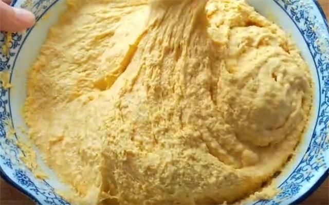 2.打成细腻的米浆,倒入大碗中,加入三克酵母,20克白糖搅拌均匀,接下来分次加入干面粉,调成比较干的面糊状态,盖上盖子醒发20分钟即可。