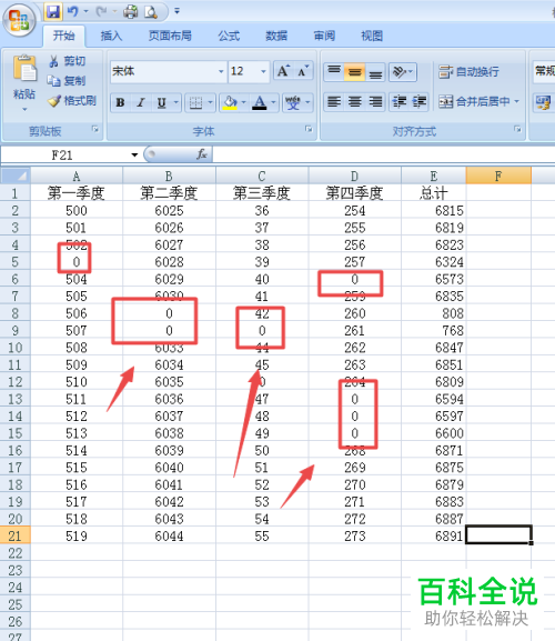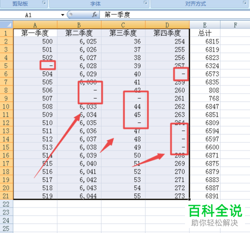 6. 如图,返回到表格,可以看到数字0全部变为-显示了。