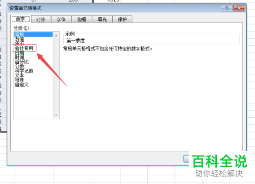 4. 然后在打开的菜单中,分类下,选择“会计专用”的选项;(www.wS46.com)