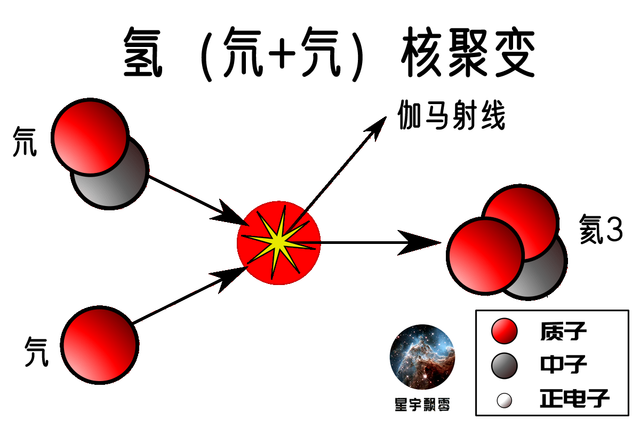 在太阳的核心区域,氕核与氘核发生聚变结合称氦-3,然后它们随着太阳对流逐渐向太阳表面上升,并最终随着剧烈的太阳运动被洒向宇宙。