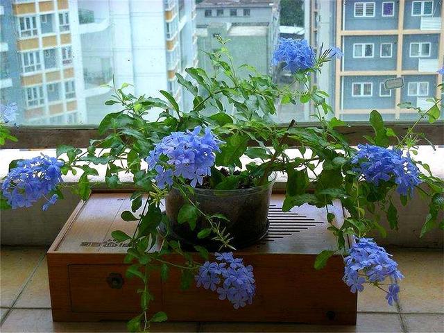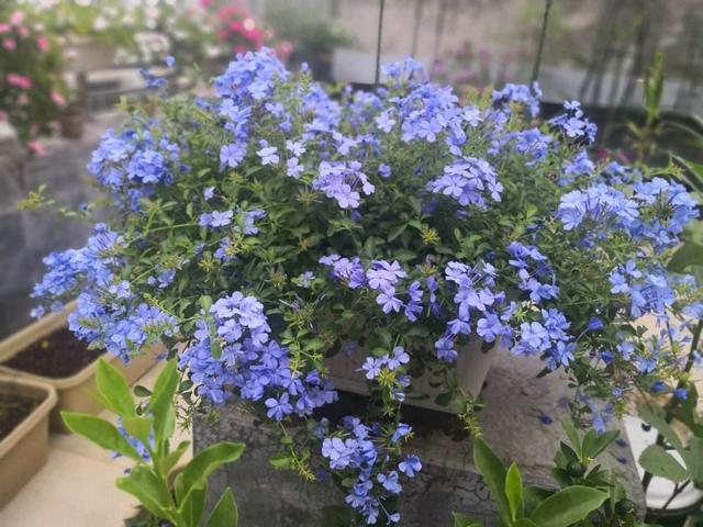 5、蓝雪花 封闭的阳台养蓝雪花再适合不过了,抗性好,生长速度非常快,而且开花的质量非常高,不仅花期长,开的花基本都是爆盆的。又耐晒,只要开着窗,温度不要太高,把根系给烤熟了,度夏基本不要烦神。它还比较的耐积水,轻易不会烂根。这些别的花卉最怕的事,蓝雪花都不怕,在封闭阳台养是不是很合适。