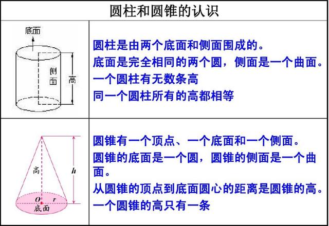 上下底面不同:圆柱上下底面相等,圆锥上底面是一个点。
