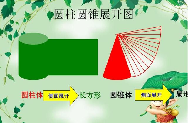 侧面展开图不同:圆柱侧面展开图是长方形,圆锥侧面展开图是扇形。
