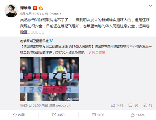 目前将由遥控机器人接替排爆工作,所需时间尚不清楚。萨克森州警方在推特上发布消息称,已开始建造防护隔离栏。相关安全措施导致德累斯顿的道路出现交通拥堵,机场运营瘫痪,飞机禁止起降。 同时,歌手谭维维发文表示自己被困:突然被告知航班取消走不了了……看到朋友发来的新闻确实挺吓人的,但是还好我现在很安全,目前还在等起飞通知。也希望当地的华人同胞注意安全,远离危险区。 ![]() 相关阅读: 第二次世界大战: 第二次世界大战(World War II,简称二战,亦可称世界反法西斯战争,1939年9月1日—1945年9月2日)是以德意志第三帝国、日本帝国、意大利王国三个法西斯轴心国和匈牙利王国、罗马尼亚王国、保加利亚王国等仆从国为一方,以反法西斯同盟和全世界反法西斯力量为另一方进行的第二次全球规模的战争。(www.ws46.coM) 战争范围从欧洲到亚洲,从大西洋到太平洋,先后有61个国家和地区、20亿以上的人口被卷入战争,作战区域面积2200万平方千米。据不完全统计,战争中军民共伤亡9000余万人,5万多亿美元付诸东流,是人类历史上规模最大的世界战争。