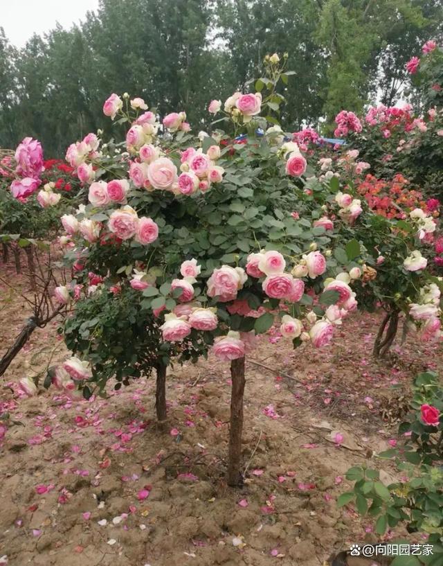 灌木月季长得会比较杂乱,因为月季花的枝条本身就是比较复杂的,而经过了嫁接后的月季花,主干笔直粗壮,在枝干的顶端会长出枝条,从外形上看起来就像是大的棒棒糖一样,树状的月季花比较适合于家门口种植,家门口一边种一棵,或者是适合于民宿种植。
