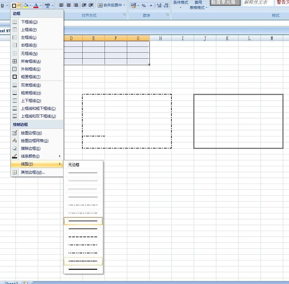 可以更改,并自定义为系统包含的边框线。 如图所示,定义好颜色,线型后,拖放鼠标画出表格即可。