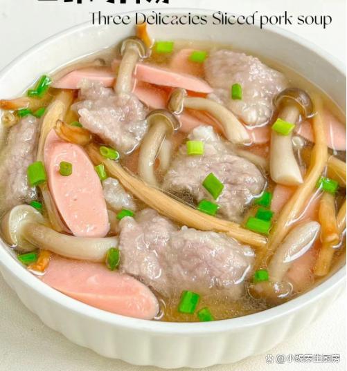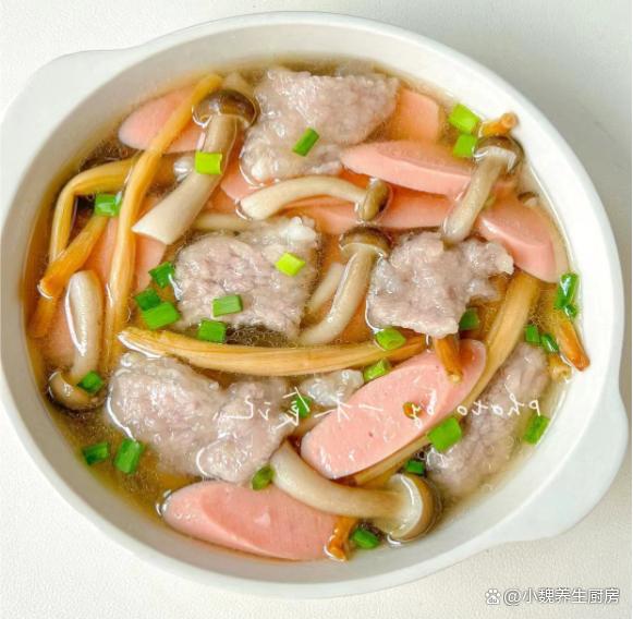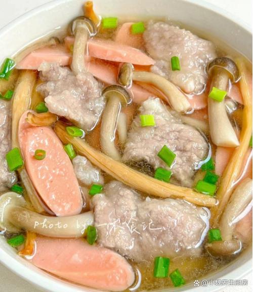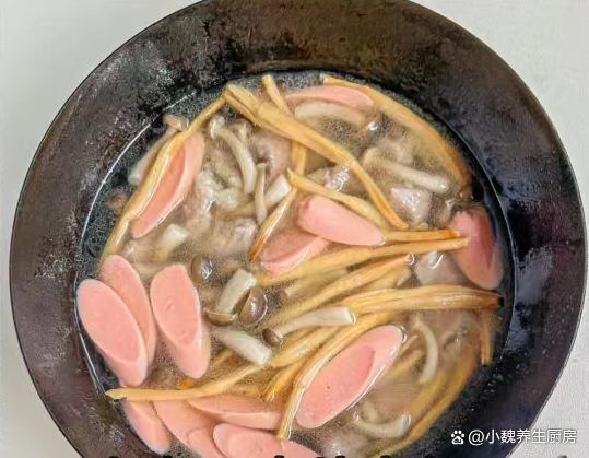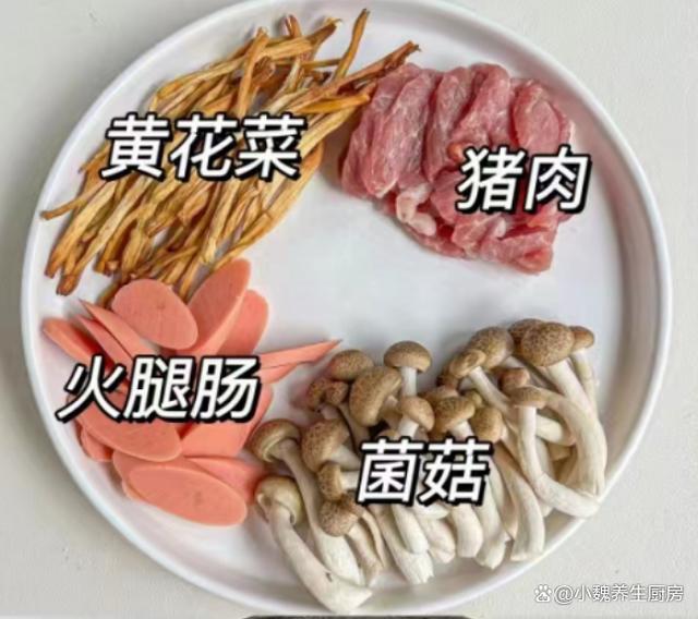 进入阳春四月,阳光明媚,风和日丽,有时候有淅沥沥的春雨,让人特别犯困,还容易出现犯困,白天干活没有精神,晚上会出现睡不着情况,会影响到我们身体的健康。睡眠关系到人的健康,尤其是上了年纪,一定要少熬夜,规律作息习惯,建议多喝这款鲜美的汤品——黄花菜菌菇火腿肠滑肉汤,食材非常便宜,汤品鲜美,不懂吃怪可惜了。春季失眠多,不要慌!建议要多喝这汤,养心安神,提升睡眠质量。  【黄花菜菌菇火腿肠滑肉汤的烹饪小技巧】 选购一些食材:选购新鲜菌菇100克左右(菌菇有很多品种,蟹味菇和海鲜菇是煮汤的首选,个头细长圆润,闻起来有菌菇的香味,一般可以炒食或煮汤,让汤品特别鲜美),黄花菜40克(干黄花菜是黄花菜经过特殊处理后的食材,保留食材的营养,更容易储存,一般可以用来煮汤或凉拌,多吃对睡眠质量有改善),红薯淀粉少许,食用油少许,一根优质火腿肠,新鲜猪肉半斤(猪肉是最便宜的肉类,里脊肉是猪肉的最嫩部位,肉质非常红润,可以烹饪成各种美食),少许料酒,生抽少许,食盐少许,半勺白胡椒粉,其他调味品。 具体制作顺序: 第一步:提前选购好黄花菜,菌菇,火腿肠和猪肉里脊,先把干黄花菜放在器皿里,加上适量温水泡发,掐掉多余部位,泡发后控干水分。第二步:先把火腿肠的包装纸去掉,斜切成若干小块,将菌菇的根部切掉,用清水冲洗干净,控干表面的水分。 第三步:先把猪肉里脊彻底洗干净,改刀顺纹切成薄片,猪肉片放在器皿里,调入半勺料酒去腥,加上生抽一勺,加上一大勺红薯淀粉,反复用手抓一抓,将肉片充分腌制入味,肉质非常鲜嫩。