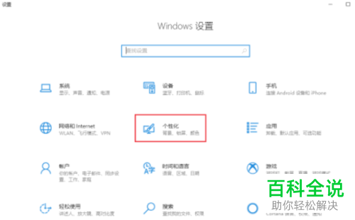 3.在打开的设置页面,找到【个性化】选项,打开