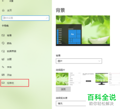 4. 在打开的个性化设置页面,点击左侧的【任务栏】选项