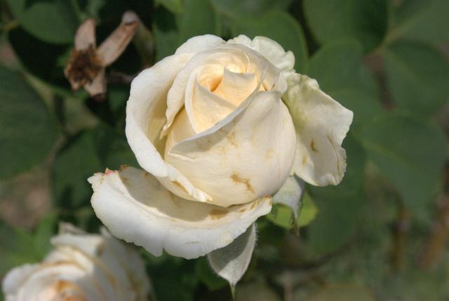 四、养分供应 白月季在生长期间对肥料的需求量很大。在栽植前要施足基肥,生长期间每月追肥1-2次,以保证植株的生长需求。可以选择使用有机肥或复合肥,按照说明书上的用量进行施肥。在施肥时,要注意不要过量,以免造成肥害。同时,也要注意施肥的时间和方法,最好在浇水后进行施肥,避免肥料直接接触根系。 五、病虫害防治 白月季的抗病能力较强,但仍然会受到一些病虫害的侵袭。比较常见的虫害有蚜虫、蓟马、红蜘蛛等;病害则常见有白粉病、炭疽病、霜霉病等。为了防治病虫害,可以采取以下措施: 预防为主:在种植前选择健康无病虫害的苗木;在养护过程中加强通风、保持环境整洁;在休眠期喷洒石硫合剂等预防性药剂。 及时治疗:一旦发现病虫害,要及时摘除病叶、病枝并集中烧毁;对于虫害可以使用相应的杀虫剂进行喷杀;对于病害可以使用相应的杀菌剂进行喷洒治疗。同时要注意药剂的交替使用,避免病虫害产生抗药性。