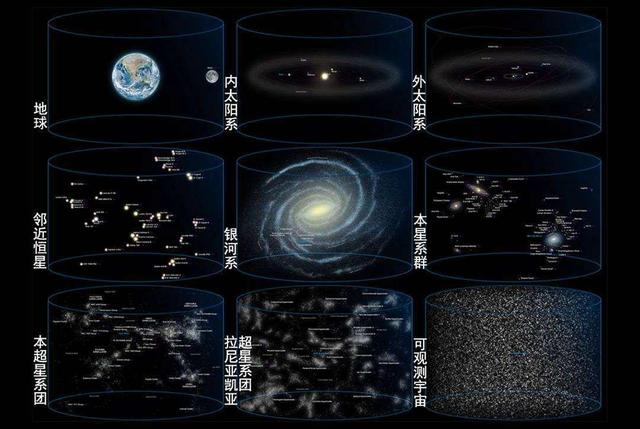 465亿光年2万亿个银河系位于本星系群和本星系团内,而本星系团位于室女座超星系团内,至于室女座超新星团,则位于更大规模的内,在这个外表形似羽毛的超级天体系统里,银河系不过是一粒沙子而已。