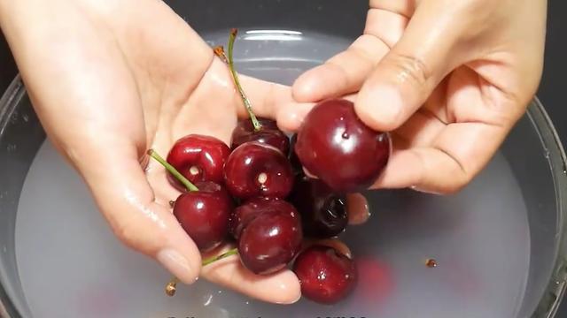 樱桃用盐和清水洗,相当于吃虫卵,教你正确方法,虫子乖乖跑出来。樱桃是一种广受欢迎的水果,其酸甜可口的味道让人回味无穷。然而,许多人在购买樱桃后,往往直接冲洗一下就食用,这是非常不卫生的。为了让大家能够更安全、更健康地享用樱桃,今天我们来学习一下正确的洗樱桃方法。  首先,将新鲜买回的樱桃放入自来水下冲洗,用手轻轻搅拌,使水流能够冲刷到每一个樱桃表面,以去除表面的泥土。可以适当浸泡1-2分钟,让水流带走表面的污物,然后捞出樱桃备用。 接下来,准备一大盆清水,加入适量的小苏打。将刚才冲洗过的樱桃放入盆中浸泡。小苏打具有很好的去污能力,可以有效去除樱桃表面的农药残留和吸附的灰尘。浸泡约10分钟左右,期间可以用手轻轻搅拌一下,以确保樱桃表面得到充分清洁。 浸泡过后,将樱桃捞出,放入事先准备好的盐水中冲洗。盐水具有杀菌消毒的作用,可以有效去除樱桃表面的细菌和寄生虫。如果樱桃内部有虫,盐水也能够帮助彻底清洗干净。 最后,用清水冲洗樱桃2-3遍,直到冲洗水清澈为止。经过这样的清洗过程,樱桃表面和内部的污物、农药残留和细菌都得到了有效去除,食用起来更加健康卫生。 掌握正确的洗樱桃方法,不仅能让我们吃得更加放心,还能更好地享受樱桃带来的美味。最后,也欢迎大家关注我们,每天学习更多简单实用的生活小技巧。