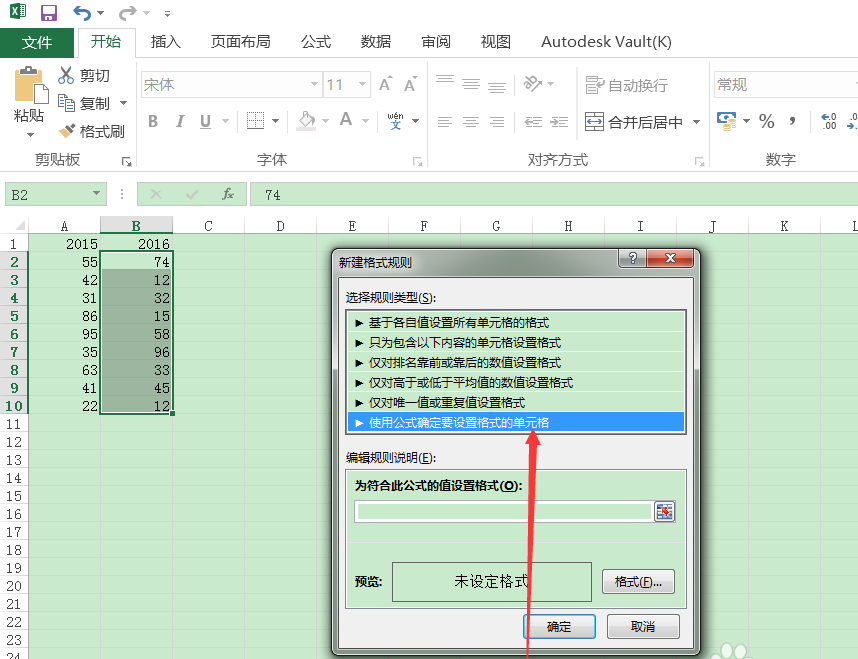 4、在对话框里选择‘使用公式确定要设置格式的单元格’