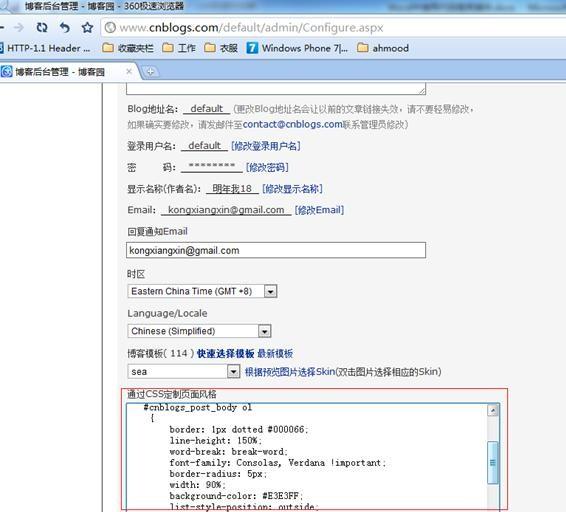 步骤十一:所以我们在博客中,不得设置所有ol的style,幸好博客园的文章都是在一个id为cnblogs_post_body的div下的,所以我在我博客中加了下面的style: #cnblogs_post_body ol { border: 1px dotted #000066; line-height: 150%; word-break: break-word; font-family: Consolas, Verdana !important; border-radius: 5px; width: 90%; background-color: #E3E3FF; list-style-position: outside; margin-left: 0px; } #cnblogs_post_body ol font { font-size: 12px !important; } #cnblogs_post_body ol li { background-color: #fff; padding-left: 5px; border-left: 1px solid #8A8AFF; margin-left: 5px !important; } #cnblogs_post_body ol li:nth-child(even) { background-color: #f5f5f5; } 步骤十二:补充一下,这段文本是加在这里的: