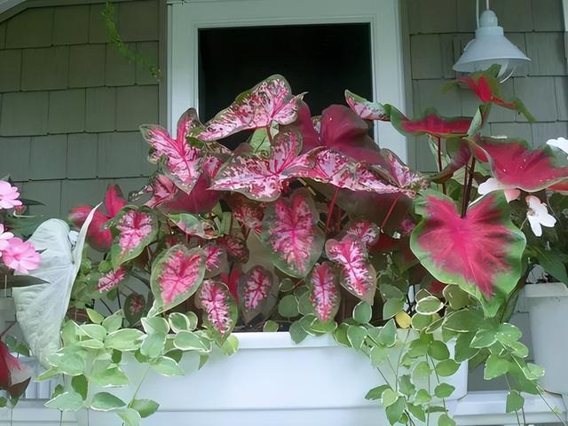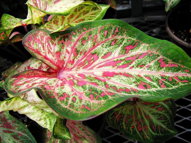 4、彩叶芋 彩叶芋是芋科植物里的一种,由于其美丽的外观,鲜艳的叶子,甚至超过了某些花朵,因此,它一上市就受到了人们的青睐。 整株植物都是五颜六色的,有的植物甚至会出现渐变,你可以看到你喜欢的颜色。 当彩叶芋出现的时候,其他的芋类植物都失去了“颜色”。如苹果芋,孔雀芋,双线芋等等,与彩叶芋相比,都要逊色一筹。