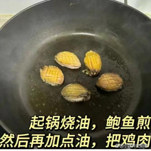 第一步:提前选购好香菇,土鸡和鲍鱼等食材,先把干香菇放在容器中,加上适量温水泡发,去掉根部一部分,洗掉里面的泥沙,控干表面的水分。第二步:将新鲜鲍鱼放在容器里,加上几勺食盐和清水,用盐水泡发一会儿,用刷子反复刷干净,反复清洗干净,切一些十字花刀,控干水分备用。第三步:将新鲜土鸡宰杀好,处理掉多余的部位,取出肚子的内脏和脏东西,剁成若干小块,用盐水浸泡一会儿,捞出控干表面水分。 第四步:鸡肉放在容器里,加上几勺面粉,加上少许清水,用手反复抓拌均匀,最后用流水冲洗干净,备用。 第五步:锅底提前烧热乎,加上少许食用油,倒入鲍鱼肉煎一煎,将其翻炒均匀,盛出备用。 第六步:锅中继续加上食用油,倒入洗净的鸡肉,加上少许料酒去腥,放入一些生姜片和葱段,大概炒2-分钟,让鸡肉炒至变色。