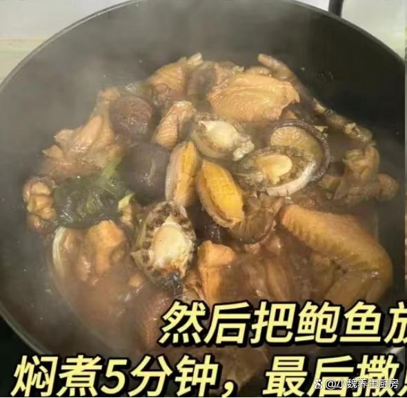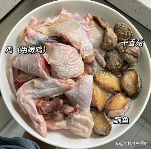 时间总是过得特别快,春季已经到了4月,5月就要迎来夏天,现在处于春季的最后一段时间,天气非常闷热,人体的新陈代谢加快,食欲会受到很大影响,孩子总是觉得没有胃口。老公最近一直很忙,基本上天天吃外卖,周末在家准备换一些新菜肴,猪肉牛肉都吃腻了,不如给家里人尝尝这道菜肴——香菇鲍鱼焖鸡,鲜嫩美味,营养更容易消化,别不懂吃。阳春4月,宁愿少吃牛肉,也要常吃这菜,营养解馋,老公孩子爱吃。  【香菇鲍鱼焖鸡的具体做法】 准备一些食材:选购新鲜干香菇60克左右(干香菇是新鲜香菇经过特殊处理,干制后的香菇很容易储存,有一股独特的香味,适合做成各种美食,搭配鸡肉是天生一对),选购新鲜土鸡1000克左右(建议选择嫩鸡,不要选择老母鸡,鸡肉会非常嫩滑,炒着吃非常好吃,解馋又开胃,我们家儿子很爱吃),新鲜鲍鱼120克左右(鲍鱼是一种常见的海鲜食材,肉质特别肥美,能够做成各种美食,营养价值很高,现在家家户户都吃得起),冷水少许,生姜一大块,食用油少许,面粉几勺,料酒几勺,食盐少许,胡椒粉一丢丢,其他调味品。 具体制作顺序: