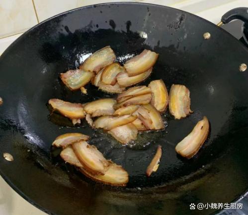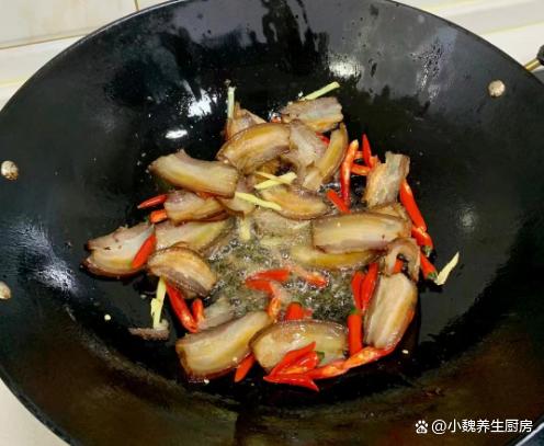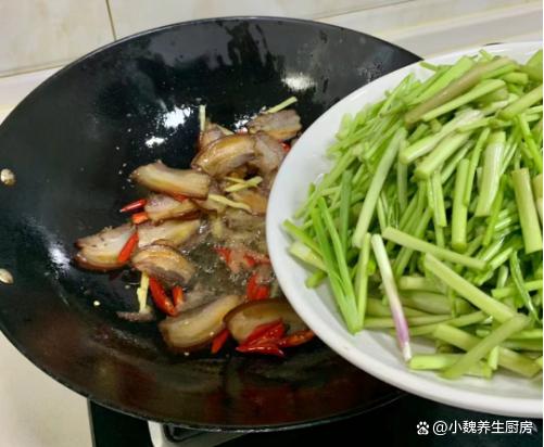 (www.wS46.com) 第五步:放入一些小米辣,姜末和蒜末,加上半勺料酒,让蒜香味都激发出来,倒入水芹菜炒至断生。 第六步:加上少许生抽和蚝油,调入鸡精和食盐等佐料,翻炒2分钟就可以了,关火盛出,这道水芹菜炒腊肉就可以开吃了,香味飘满整个厨房,胃口越来越好。 水芹菜炒腊肉的制作小贴士:首先,选择新鲜的食材至关重要。水芹菜应该呈现出鲜亮的绿色,茎部脆嫩,没有折断或折皱的情况。腊肉则应该选择色泽红亮、纹理清晰、质地坚实的,这样的腊肉炒制时才会释放出浓郁的香味。其次,在炒制前,记得将腊肉提前切片,并用温水稍微浸泡一下或者焯水处理,这样可以帮助去除腊肉中的一部分盐分,使其口感更加鲜嫩。同时,水芹菜也要事先清洗干净,切成合适的段状,备用。在炒制过程中,火候的掌握也至关重要。建议使用中火,先将腊肉煸炒至微微出油,散发出诱人的香气。然后,将火调至中小火,加入水芹菜段,迅速翻炒均匀,以免水芹菜过火变色。此外,为了提升菜品的口感和营养价值,你还可以适量添加一些调料和配菜。例如,可以加入少许蒜末或姜片提味,增加一些辣椒段或花椒粒增添一丝麻辣口感。同时,也可以尝试搭配一些其他蔬菜,如胡萝卜、青椒等,使菜品更加丰富多样。 遵循这些小贴士,相信你一定能够轻松制作出一道色香味俱佳的水芹菜炒腊肉,让你的家人和朋友大饱口福。 你们有没有吃过这道水芹菜炒腊肉呢?(文中的配图都出自网络)