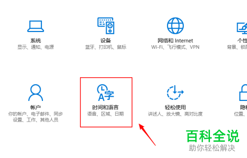 5.第五步,在设置页面中,点击下图箭头所指的【时间和语言】选项。