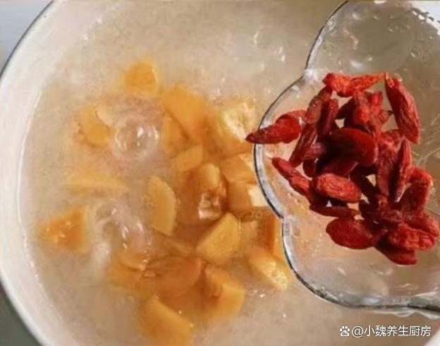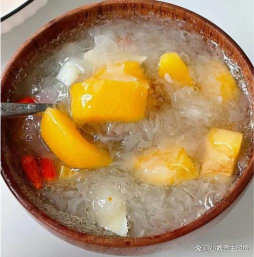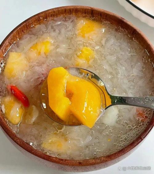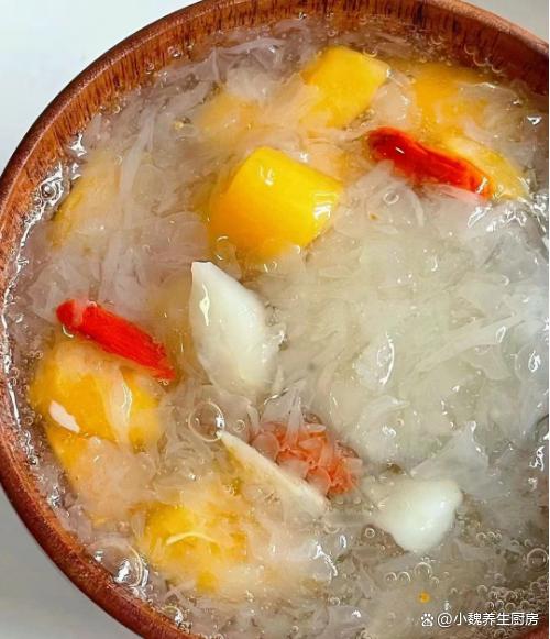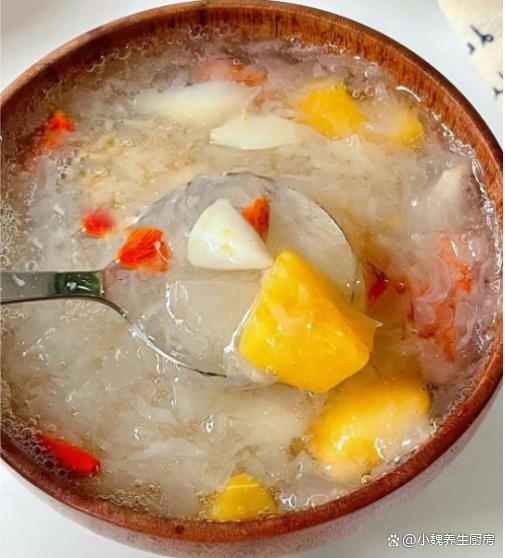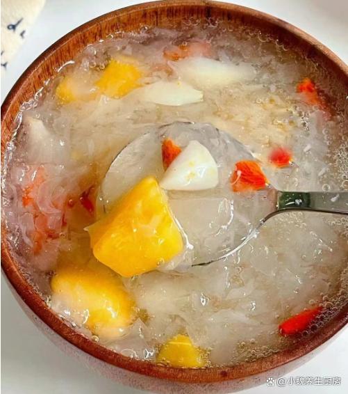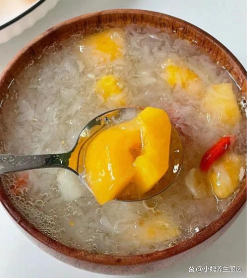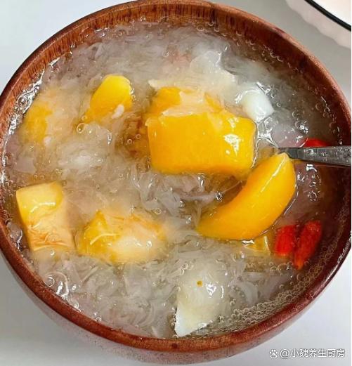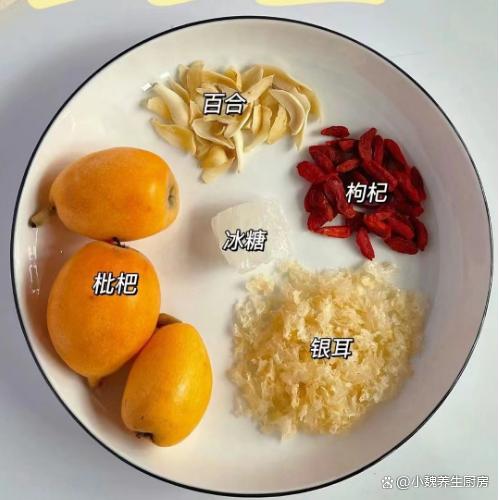 第五:开中小火继续焖煮,放入枇杷和其他食材(有条件可以加入雪梨和红枣),大火炖煮15分钟左右。 第六:放入一些老冰糖,丢入洗净的枸杞子,煮几分钟就可以了,关火盛出,这款枇杷百合银耳枸杞汤就制作完成了。 枇杷百合银耳枸杞汤的烹饪小贴士:首先,我们要确保所有的食材都是最新鲜的。枇杷要选果实饱满、颜色鲜艳的,百合要选瓣片肥厚、无斑点的,银耳则要选色泽洁白、质地柔软的。枸杞则最好选择粒大、色红、肉厚的。 在烹饪过程中,枇杷需要去皮去核,切成大小适中的块状,以便在炖煮过程中充分释放出其甜美的味道。百合则需要提前用清水浸泡,待其软化后,再一片片地清洗干净。银耳则需要用温水泡发,然后剪去根部,剪成小朵。枸杞则需要在烹饪的最后阶段加入,以保持其鲜艳的色泽和营养。烹饪时,我们要注意火候的控制。一开始要用大火将汤煮沸,然后转小火慢慢炖煮,这样才能充分提取出食材的营养和味道。同时,我们也要注意汤的浓稠度的控制,如果汤过于浓稠,可以适量加入一些清水,反之则可以适量增加炖煮的时间。最后,当所有的食材都炖煮至熟烂,汤的味道醇厚鲜美时,就可以关火,盛出享用了。 总的来说,烹饪枇杷百合银耳枸杞汤并不复杂,只要注意食材的选择和烹饪的火候,就可以轻松做出一道美味又营养的汤品。希望大家都能尝试一下,享受这道汤品带来的美味和健康。 (www.ws46.coM) 你们是否掌握这款枇杷百合银耳枸杞汤的正确做法吗(文中的配图全部出自网络)