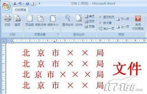 先选中第一列表格,设置好字体、字形及字号,之后就是按实际情况调整行距了。将整个表格选中,在菜单栏中点击“开始→段落”,在打开的”段落“窗口”中,在“缩进和间距”标签下的“间距”中,点击“行距”右侧的下拉三角,选择“固定值”,在“设置值”中选择合适的磅值,点击“确定”即可。再选中第二列表格,右击鼠标,选择“合并单元格”,合并完成后,再次右击鼠标,用鼠标指向“单元格对齐方式”,选择“水平居中”,设置并调整字体、字形及字号等。将整个表格选中,设置字体颜色,调整表格并将表格选拖放到合适的文档位置,再在菜单栏点击“表格工具→设计→边框”选择“无框线”,将单元格边框设置成“无框线”,点击菜单栏中的Office图标,用鼠标指向“打印”,选择“打印预览”,即可看到预览效果(如图02),这样四(多)行合一工作效果就此完成。