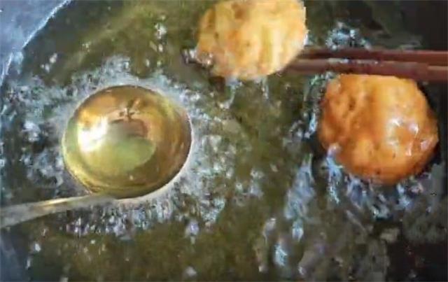5.放入油中,没入油内炸至微黄的时候,用筷子轻轻一推脱模,炸至金黄酥脆即可出锅。