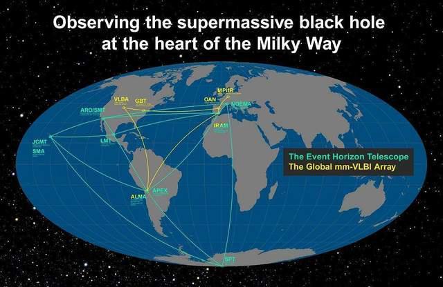 他们通过将分布在地球不同区域的8个射电望远镜联网通过这个射电阵列的高灵敏度,天文学家才得以收集到M87星系中心黑洞和银河系中心黑洞周围的吸积盘信息,,勾勒出黑洞吸积盘的大致模样,也就是我们现在看到的这两张橘红色光晕。