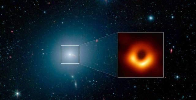 需要指出的是,虽然这两黑洞图像在外表和大小上都相似,但不要忘了,银河系中心黑洞仅有440万倍太阳质量,,银河系中心黑洞距离地球2.6万光年,M87星系中心黑洞距离地球5500万光年。