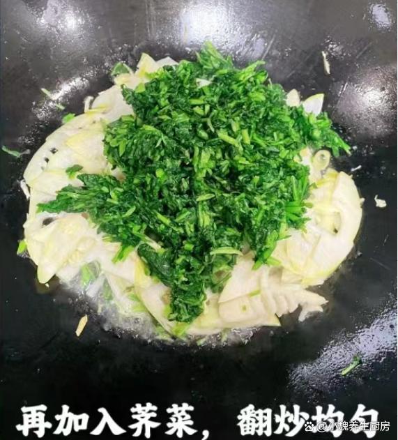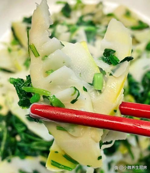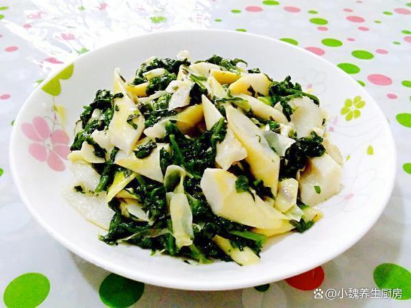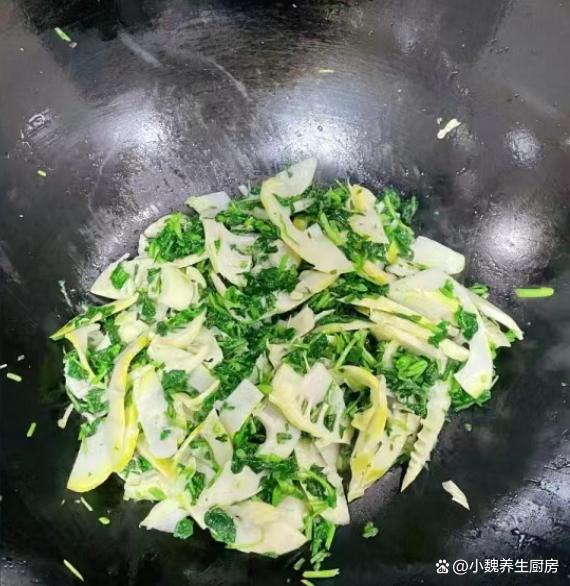 第六步:放入切好的荠菜,加上生抽一小勺,加上鸡精半勺,食盐和胡椒粉半勺,不停地翻炒几下,装盘出锅,这道荠菜炒春笋就制作完成了。 荠菜炒春笋的制作小贴士:首先,选购新鲜的荠菜和春笋是关键。荠菜应该选择颜色鲜绿、叶片嫩嫩的,而春笋则应选择笋壳紧闭、笋肉洁白鲜嫩的。在烹饪前,将荠菜和春笋分别清洗干净,荠菜可以稍微浸泡一下以去除泥沙,或者用热水焯烫,春笋则需要剥去外壳并切成薄片,春笋也要焯水处理,让口感更好。 炒制时,火候的掌握也至关重要。建议使用中火快炒,以保持荠菜和春笋的鲜嫩口感。先将春笋片煸炒至微黄,然后加入荠菜迅速翻炒。为了提升菜品的口感和风味,可以适量添加一些调料,如盐、鸡精和少许白糖。此外,几滴香油或花生油也能让菜品更加诱人。 在翻炒的过程中,注意保持锅内的温度均匀,避免过高或过低导致炒焦或炒糊。当荠菜炒至断生、春笋片变得脆嫩时,即可出锅享用。为了让菜品更加诱人,可以在装盘后撒上一些葱花或芝麻作为点缀。 网友们,你们是否掌握这道荠菜炒春笋的烹饪技巧吗?(文中的配图都出自网络)