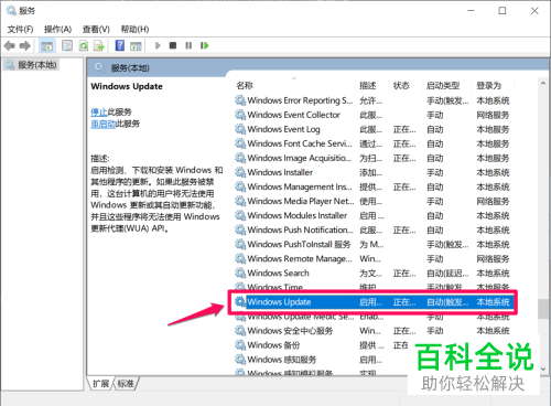 4. 第四步打开【服务】窗口后,根据下图箭头所指,找到并双击【Windows Update】选项。