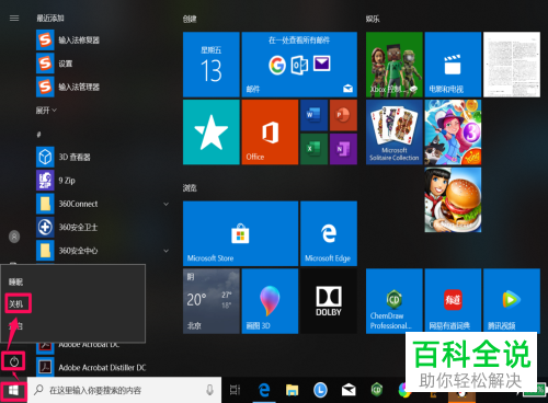7. 最后依次点击【开始-电源】图标,根据下图箭头所指,将显示为【关机】。