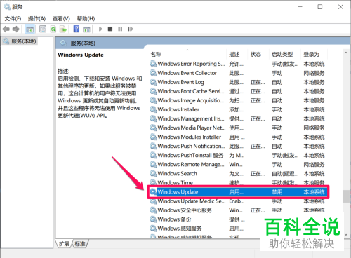 6. 第六步退回【服务】窗口,根据下图箭头所指,成功禁用【Windows Update】。
