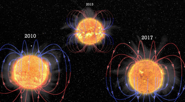 “太阳轨道器”这种情况和地球每隔几十万年发生一次的磁场翻转还不一样由于目前太阳活动正值10年以来的一次小高峰,所以包括欧空局“太阳轨道器”在内的探测器都在抓紧围绕太阳公转并收集数据,,大有进一步发展的趋势,因为目前太阳表面已经出现了很多耀斑,每个都要比地球更大。