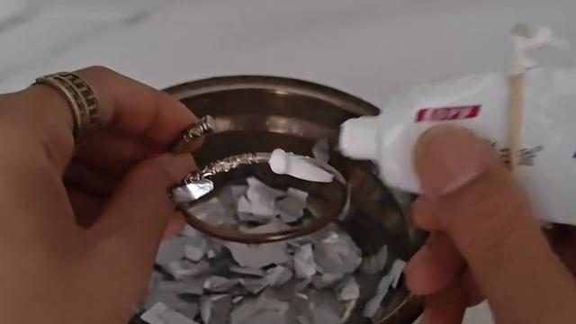 不管银手镯有多黑,放“水里”泡一泡,手镯锃亮如新,和新的一样。银手镯,作为一种经典的饰品,一直深受大家的喜爱。然而,很多人都会遇到一个问题:银手镯戴久了,表面会出现发黑的现象,这不仅影响了美观,还可能让人误以为手镯的质量有问题。其实,银手镯发黑是一个普遍现象,而解决这个问题并不难,只需简单的几步操作,就能让银手镯恢复如新,和新买的一样。  首先,我们来了解一下银首饰为什么会发黑。这主要是因为我们在佩戴时,经常使用的沐浴露、洗发水、香皂等含有化学成分,这些成分长时间与银手镯接触,就容易导致其发黑。这些化学成分与银首饰接触后,会在其表面形成一层氧化物,从而影响其光泽度。那么,如何解决这个问题呢?接下来,就让我们一起来看看这个简单实用的方法吧! 1,准备一个小碗和一张锡箔纸。将锡箔纸剪碎后放入碗中,这样可以增加碗内的反射效果,有助于后续的清洁工作。然后,把银手镯放入碗中,加入一勺食盐和两勺热水。这里需要注意的是,热水的温度不宜过高,以免烫伤皮肤。同时,要确保水位超过手镯,以便更好地进行浸泡。 2,用筷子或其他工具搅拌一下碗中的溶液,让手镯充分浸泡在其中。浸泡的时间可以根据手镯发黑程度来决定,一般建议5到10分钟。时间到后,拿出手镯,你会发现它明显变白了,但可能还有一点黑色物质残留。 3,准备一支牙膏,挤一点在银首饰上,并涂抹均匀。牙膏在这里起到了一个磨擦剂的作用,可以帮助去除表面的黑色物质。如果家里有牙刷的话,可以用牙刷在银首饰上刷一刷,特别是接口处等容易积聚污垢的地方。这样就能更彻底地清除银手镯上的黑色物质了。 4,清洗完毕后,用清水冲洗掉牙膏残留物后,你会发现银手镯变得非常明亮,就像新买的一样。这时,你可以用干净的毛巾轻轻擦干手镯表面水分,然后将其放在通风处晾干即可。学会了这个方法后,银首饰发黑就再也不用花钱去洗了,在家就能清洗干净。 这是一个实用的小知识,希望大家都能掌握并分享给身边的人!此外,为了延长银手镯的使用寿命和保持其光泽度,我们还可以在日常生活中注意以下几点:一,避免长时间接触化学物质如沐浴露、洗发水等。二,定期进行清洁和维护。三,存放时避免与硬物碰撞或放在潮湿的环境中。通过这些方法,我们可以更好地保护和保养我们的银手镯,让它一直陪伴着我们。最后,也欢迎大家关注我们,每天学习更多简单实用的生活小技巧。